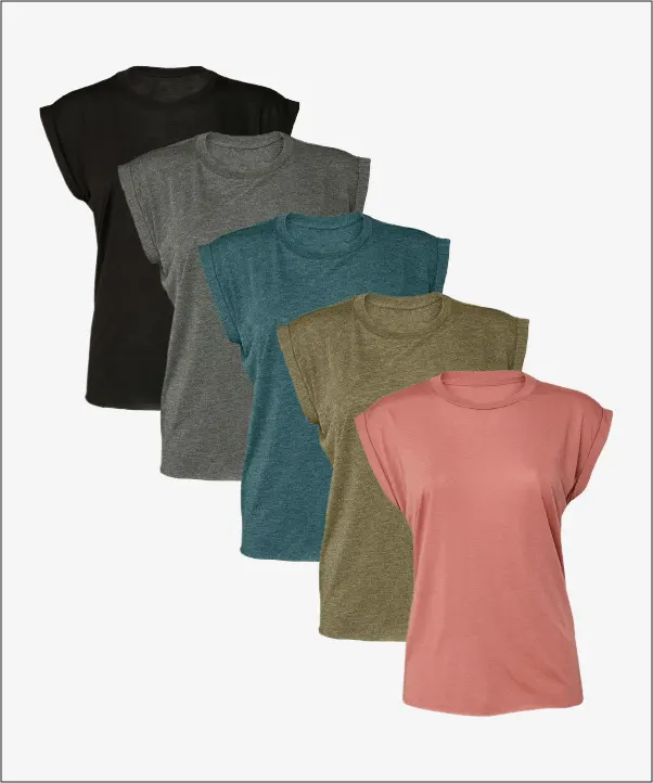 Bella Canvas Womens Flowy Muscle Tee With Rolled Cuff 5 Pack